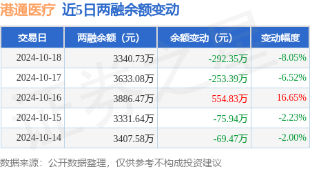 本站消息,10月18日,港通醫療(301515)融資買入744.98萬元,融資償還1037.38萬元,融資凈賣出292.4萬元,融資余額3338.03萬元。